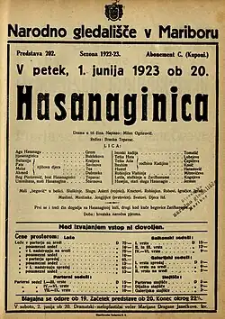 - ^ Ogrizović, Milan (1909). Hasanaginica: Drama u tri čina [Hasanaginica: A Drama in Three Acts] (in Croatian). Matica hrvatska. Retrieved August 28, 2024 – via Internet Archive.