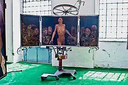Palakarkina shared the last five years of Jean Tinguely's life and created with him a series of paintings Märtyrer und Gespenster, which includes three collaborations - The Altars: Saint Sebastian (1988), Saint Christopher/Rococo (1989), and Kathryn, Bride of Christ (1990). The collection was shown at the gallery Jamile Weber in Zurich in 1990[3] and at the Gallery Hans Mayer in Düsseldorf in 1991.[4] The Altar Saint Sebastian was shown in the retrospective of Jean Tinguely in Musee d'Art et d'Histoire in Fribourg in 1991. The collaborations were shown at the Gallery Beaubourg in 1996 [5] and at Padiglione d'Arte Contemporanea in Milan in 2008.[6] The works are on display at the Rossini Foundation in Carate Brianza in Northern Italy.[7]