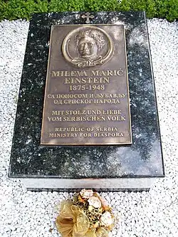 - ^ Unveiling and consecration of memorial gravestone dedicated to Mileva Marić-Einstein Archived 2 February 2017 at the Wayback Machine, Republic of Serbia, Ministry for Diaspora, 14 June 2009.