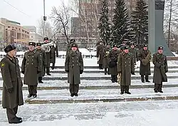Military Band of the Central Military District is a military band unit of the Russian Armed Forces, based in Yekaterinburg. It is part of the Military Band Service of the Armed Forces of Russia as well as the Central Military District. It is one of the leading creative musical groups in the Urals, Volga Region and Western Siberia in terms of brass music.[1] Especially famous are its musical numbers, accompanied by synchronous dance movements, for which the military musicians have been commonly nicknamed the "dancing orchestra."