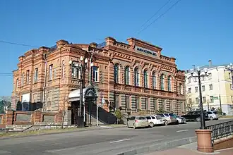 The Military History Museum of the Far Eastern Military District was created on 31 May 1983, the 125th anniversary of the foundation of Khabarovsk. The commander of the Far Eastern Military District Ivan Tretyak ordered the expansion of the Khabarovsk Officer's House exhibition room into a full fledged museum through the transfer of artifacts from the I.N. Grodekov Local History Museum.[1] The building housing the exhibits was built between 1903 and 1907, it was designed by Khabarovsk engineers N. F. Alexandrov and L. O. Tchaikovsky. It functioned as a branch of Gosbank until 1930,[2] from 1930 until the museum's creation it served various military purposes, in 1945 it was the headquarters of the 2nd Far Eastern Front. A memorial plaque honoring Marshal of the Soviet Union Aleksandr Vasilevsky can be found on the building's facade.[3] The building currently holds the status of an architectural monument of federal importance.[2]