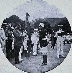 In order to remedy the deficiency of the teaching staff, in 1918 the Minister of War opened a competition with a practical test for the School's instructors, until then chosen by favoritism. The selected lieutenants and captains, under the strong influence of the Young Turks, were called the “Indigenous Mission”, as opposed to the impending French Military Mission.[36][37] Of the 19 Indigenous Mission officers present in 1920, at least 11 would later rise to the rank of general.[38] In 1919 colonel Eduardo Monteiro de Barros was appointed to the command, the first by origin as head of the troop and not as an officer of the General Staff or a former full professor. He was known for his strict application of discipline.[39] The lack of material resources was addressed in the administration of Minister of War Pandiá Calogeras (1919–1922).[36]