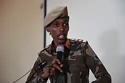 Brigadier General Odowaa Yusuf Rageh wearing the Khaki Infantry Beret and rank slide