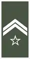 | Subtenente | Primeiro-sargento | Segundo-sargento | Terceiro-sargento | Cabo | Soldado primeira classe | Soldado segunda classe | ||||||||||||||||||||||||||||||