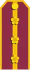 | Literal translation | Overall control command | Upper commander | Middle commander | Lower commander | Senior field officer | Middle field officer | Junior field officer | Upper officer | Middle officer | Lower officer | Allow officer | |||||||||||||