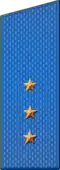 | US equivalent[5] | General | Lieutenant general | Major general | Brigadier general | Colonel | Lieutenant colonel | Major | Captain | First lieutenant | Second lieutenant | Cadet / Officer candidate | ||
