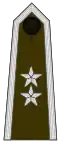 | Generał broni | Generał dywizji | Generał brygady | Pułkownik | Podpułkownik | Major | Kapitan | Porucznik | Podporucznik | ||||||||||||||||||||||||||