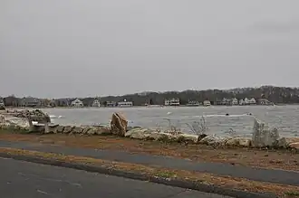 The Mill Cove Historic District is a 9-acre (3.6 ha) historic district in Westport, Connecticut, United States. The district was listed on the National Register of Historic Places in 1991. It consists of a small group of cottages, 15 of which are contributing buildings, and other cottages and outbuildings.[1] These well-preserved collection of Colonial Revival and Bungalow-style cottages were built between 1908 and 1940 on a barrier beach facing Long Island Sound, and are only accessible on foot. They are generally small in size and set on open lots, although some, like the house at 52 Compo Mill Cove, have a high hedge for privacy.[2]