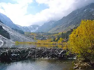 ![]() Beaver dam on Mill Creek in Lundy Canyon | |