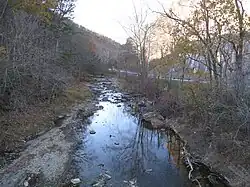 Mill Creek viewed from Trinity Road (County Route 220/11) bridge at Junction -