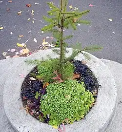 Mill Ends Park (sometimes mistakenly called Mill's End Park)[1] is the smallest urban park in the United States. It consists of 1 tree, located in the median strip of SW Naito Parkway next to Tom McCall Waterfront Park along the Willamette River near SW Taylor Street in the downtown core of Portland, Oregon, United States. The park is a small circle 2 ft (0.61 m) across, with a total area of 452 sq in (0.292 m2). It was the smallest park in the world, according to the Guinness Book of Records, which first granted it this recognition in 1971,[2] and held the distinction until February 2025, when the honour was awarded to a park in the town of Nagaizumi, Japan, dubbed 'The world's smallest park,' which is 0.24 m2 (370 sq in).[3][4]