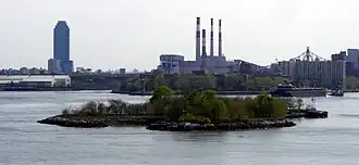 Mill Rock is a small uninhabited island between Manhattan Island and Queens in New York City. The island belongs to the borough of Manhattan. It lies about 1,000 feet (300 m) off Manhattan's East 96th Street,[1] south of Randalls and Wards Islands, where the East River and Harlem River converge. Mill Rock is located at Hell Gate, formerly an infamously treacherous area for ships to pass.