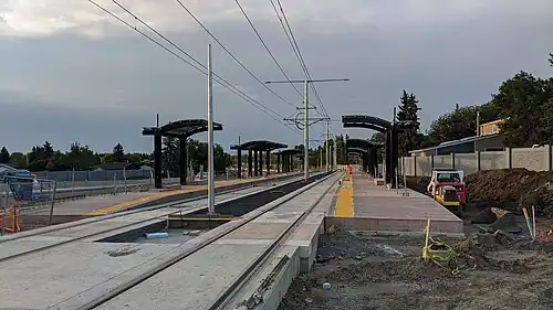 Millbourne/Woodvale stop is a tram stop in the Edmonton LRT network in Edmonton, Alberta, Canada. It serves the Valley Line, and is located on the east side of 66 Street, north of 38 Avenue NW, at the corners of Michaels Park, Greenview, Hillview, and Lee Ridge.[1] The stop was scheduled to open in 2020.[2] It officially opened on November 4, 2023.[3]
