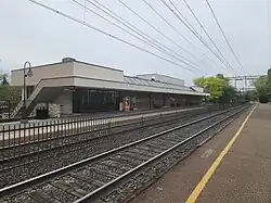 Millburn is in active commuter railroad station in Millburn Township, Essex County, New Jersey. Serving trains of NJ Transit's Morristown Line and Gladstone Branch, trains operate from New York Penn Station and Hoboken Terminal to points west, including Dover, Gladstone and Hackettstown. The next station to the west is Short Hills while the next station to the east is Maplewood. Millburn station contains two low-level side platforms with two office buildings fronting the structure, a colonial-style building built in 1962 on the westbound tracks and a modern office building on the eastbound tracks built in 1987. The station also has a ticket agency with a waiting room.