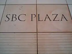 The Grainger Plaza (formerly AT&T Plaza) is a public space that hosts the Cloud Gate sculpture.[62] The plaza opened in July 2004 with the unveiling of the sculpture during the grand opening weekend of the park. Ameritech donated $3 million for the naming right for the plaza, but it was SBC Plaza when the park opened, as a merger had changed the company name to SBC Communications.[28][63] The 2005 merger of SBC and AT&T Corporation led to the name AT&T Plaza. In 2021, the Grainger Foundation established a $5 million endowment to support the ongoing enhancement of the plaza (now called Grainger Plaza) and Cloud Gate. The sculpture and the Grainger Plaza are located on top of Park Grill, between the Chase Promenade and McCormick Tribune Plaza & Ice Rink. The plaza has become a place to view the McCormick Tribune Plaza & Ice Rink. During the holiday season, the plaza hosts Christmas caroling.[64]