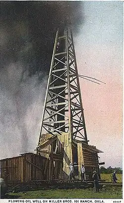 In 1908 the Millers entered into a leasing arrangement with E. W. Marland, who formed the 101 Ranch Oil Company. Oil was struck in 1911 at the "Willie-Cries-for-War" well. Marland would become a millionaire and later a U.S. congressman. He was eventually elected the governor of Oklahoma.[9] The company's 1911 oil discovery led to the founding of the Marland Oil Company, later renamed the Continental Oil Company, and then ConocoPhillips.