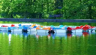 Before the park was created, the area had been used for farmland and small industrial sites, which had been built to take advantage of the power provided by the river.[2] The Ecclesall corn mill—remnants of which can be seen at the north of the park—is recorded as early as 1299, when it was given by Robert de Ecclesall to the monks of Beauchief Abbey.[3] The Skargell or Bartin wheel was located on the site of the present-day boating lake. It was a cutlers wheel that was constructed in the first half of seventeenth century and remained in use into the mid-nineteenth century.[4]