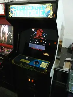Millipede (stylized millipede in western releases and Milli-Pede in Japan) is a 1982 fixed shooter video game developed and published by Atari, Inc. for arcades; in Japan, it was distributed by Namco. It is the sequel to 1981's Centipede, with more gameplay variety and a wider array of insect enemies. The objective is to score as many points as possible by destroying all segments of a millipede that moves toward the bottom of the screen, as well as eliminating or avoiding other enemies. As with its predecessor, the game is played with a trackball and a single fire button which can be held down for rapid-fire.