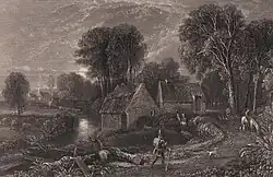 Nineteenth-century historian Paterson described it as being "on the south bank, not far from the 'Craigs o'Kyle', and a more lovely spot never inspired a poet's fancy. The Coyl winds round the mill in serpentine form, in a dark, deep, and rather narrow stream, over which the ash and elm throw their gigantic arms, and in summer, with their waving foliage, almost prevent the sun's beams from playing upon its waters. At the bend, where stands the mill, which is driven by water conveyed from a considerable distance above, the stream is spanned by a rustic bridge for foot passengers, beneath which the waters run in a deep channel, peculiarly pleasing to the eye of the angler."[3]