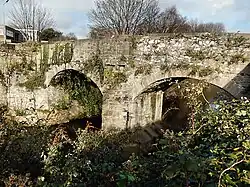 Historically used as a fording point on the River Dodder,[3] a bridge was built at Milltown in the 17th century.[6] This bridge, known as "(Old) Milltown Bridge" or "Packhorse Bridge", is recorded in the Record of Monuments and Places and classified as a protected structure.[7][8][9] A newer bridge was later built at Milltown,[9] and by the early 20th century the older structure was used only for pedestrian traffic.[3] The newer Milltown Bridge was built on the site of the former ford, which was in use up until at least the late 18th century.[3]