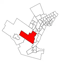 In February 2013, the district was reverted to the original proposal, but with the northern suburbs of Burlington excluded.[11] This proposal ended up being approved.[12] The area of this district was previously part of Halton and had a population of 88,065, 17% below the provincial average.[11][13][14]