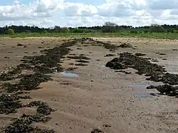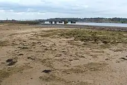 At low tide the River Clyde at Dumbuck could be forded and in Roman times to facilitate the crossing a 7 m (23 ft) wide causeway was supposedly constructed running northwards from Longhaugh, curving through the river-dyke and passing as a low mound towards the beach. The causeway continued as with a cobbled surface atop a gravelly mound continuing towards the Long Dyke and the Longhaugh Light.[9] It then ran across Milton Island and went on to run through a field gate and on as a low mound to Dumbarton road. North of Dumbuck some road metalling was traced. On the south side of the river it is thought that the causeway continued towards Bishopton Fort.[10] The Romans required a link between their fort and the Antonine Wall that reached at least as far as Old Kilpatrick.