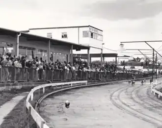The stadium opened as an independent track on 25 July 1963 and was called the Groveway Greyhound Stadium.[2] The name Groveway came from the Grove Way road that passed the stadium on the north side joining the small town of Bletchley with the village of Simpson. The track had been built four years before the birth of a large new town called Milton Keynes (named after one of the 15 villages) in a planned 34 square mile area. Milton Keynes proceeded to grow at speed eventually becoming the size of city.[3]