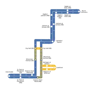 7. ^ Walker, Don (January 16, 2015). "Feds approve route change for proposed Milwaukee streetcars". Milwaukee Journal Sentinel. Retrieved February 3, 2015.
