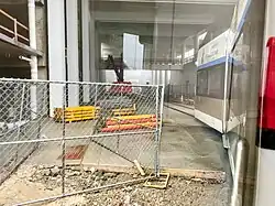 On August 19, 2016, Omaha contractor Kiewit Infrastructure was announced as the winning bidder for the contract to construct the line and carhouse.[23] In February 2017, it was announced that track construction was projected to begin in April that year, which it did.[24][25][26][27] Work on utility relocation relating to the project had already started in 2016,[28] as did construction of the maintenance facility for the line.[29] Installation of the tracks along the route began in May 2017. By March 2018, more than 90% of the track had been installed along the initial line.[5]