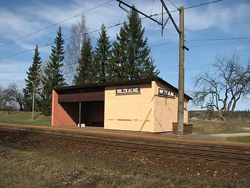 Milzkalne Station is a railway halt located about 1 km (0.62 mi) south the village of Milzkalne in the Courland region of western Latvia.[1] The railway halt is located on the Torņakalns – Tukums II Railway. Not every train stops at the Halt.[2]