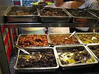 Minahasan cuisine or Manado cuisine is the cooking tradition of the Minahasan people of North Sulawesi, Indonesia. It is popularly known as "Manadonese cuisine" after Manado, the capital of the province, although other cities in Northern Sulawesi, such as Bitung, Tomohon and Tondano, are also known as Minahasan culinary hotspots. Manadonese cuisine is known for its rich variations in seafood, generous amount of spices, extra-hot condiments,[1] exotic meats, and European-influenced cakes and pastries. Popular Manadonese dishes include tinutuan (Manado-style vegetable and rice congee), cakalang fufu (smoked skipjack tuna), cakalang noodle, paniki (spiced fruit bat), chicken or various fish and seafood spiced in rica-rica or woku spices, chicken tuturuga, and brenebon.