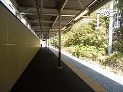 The platform that corresponds to a four-car train has a 90 m (300 ft) length.[3]