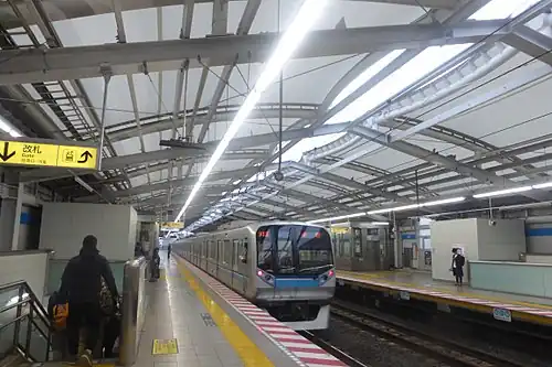 The station facilities were inherited by Tokyo Metro after the privatization of the Teito Rapid Transit Authority (TRTA) in 2004.[1]