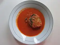 Padang food is famous for its use of coconut milk and spicy chili.[2] Minang cuisine consists of three main elements: gulai (curry), lado (chili pepper) and bareh (rice).[3] Among the cooking traditions in Indonesian cuisine, Minangkabau cuisine and most of Sumatran cuisine are influenced by Indian and Middle Eastern cuisine, with dishes cooked in curry sauce with coconut milk and a wide variety of spice mixes.