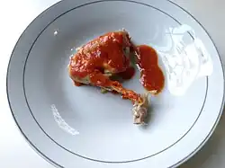 - Kepiting saus padang, seafood dish of crab served in hot and spicy Padang sauce.