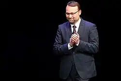 Mindaugas Kvietkauskas (born 27 May 1976)[1] is a Lithuanian politician. He served as Minister of Culture in the Skvernelis Cabinet led by Prime Minister Saulius Skvernelis from 11 January 2019 to 11 December 2020.[2]