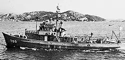 On the other hand, as the deterioration of maritime security due to the disappearance of the Japanese Navy became more serious, in 1948, the Japan Coast Guard was established as a law enforcement agency under the Ministry of Transport, incorporating these minesweeping units derived from the former Navy. On June 1, 1950, the Minesweeping Division was separated from the Guard and Rescue Department, and the Route Enlightenment Headquarters was established in the center and the Route Enlightenment Department was established in the regions as an organization under the direct control of the Secretary. In addition, along with the revision of the organization on June 1, 1951, the whole country was divided into nine coast guard zones, and a route enlightenment department was set up at the coast guard headquarters of each district, and minesweepers were distributed and deployed in each district.[2] Meanwhile, in 1950, the Japanese Special Sweeping Corps was dispatched in response to the Korean War. Although the minesweeping work produced one line of duty, it was highly evaluated by the UN forces during this period when the minesweeping force was extremely weak, and it also led to the improvement of the conditions of the San Francisco Peace Treaty.[3]