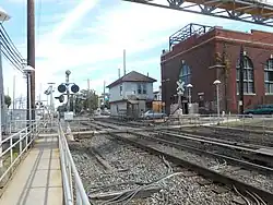 The construction of a new parking structure at Harrison Avenue began in fall 2018,[16][18] followed by the start of reconstruction on the station itself in early 2019.[16][17] The Second Street parking lot would also be expanded,[19] and a park and ride parking lot at Main Street would be built.[20] The dangerous grade crossing at Main Street was closed and replaced with a pedestrian overpass with two elevators.[21] Additionally, the grade crossing at Willis Avenue further east of the station was eliminated and replaced with an underpass.[22] The construction of the third track also required the replacement of a substation at the intersection of Main and Front Streets.[23]