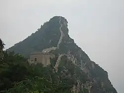 In 1550, having once more been refused a request for trade, Altan Khan invaded the Xuan–Da region. However, despite several attempts, he could not take Xuanfu due to Weng Wanda's double fortified line while the garrison at Datong bribed him to not attack there.[23] Instead of continuing to operate in the area, he circled around Weng Wanda's wall to the relatively lightly defended Gubeikou, northeast of Beijing. From there Altan Khan passed through the defences and raided the suburbs of Beijing. The Ming court put up minimal resistance and watched the suburbs burn as they waited for reinforcements to drive the invaders out. According to one contemporary source, the raid took more than 60,000 lives and an additional 40,000 people became prisoners. As a response to this raid, the focus of the Ming's northern defences shifted from the Xuan–Da region to the Jizhou and Changping Defence Commands (grouped and abbreviated as Ji–Chang) where the breach took place.[13] Later in the same year, the dry-stone walls of the Ji–Chang area were replaced by stone and mortar. These allowed the Chinese to build on steeper, more easily defended slopes and facilitated construction of features such as ramparts, crenelations, and peepholes.[29] The effectiveness of the new walls was demonstrated in the failed Mongol raid of 1554, where raiders expecting a repeat of the events of 1550 were surprised by the higher wall and stiff Chinese resistance.[30]