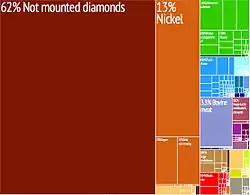 Revenue from diamond exports has enabled Botswana to invest in infrastructure, education, healthcare, and social welfare programs, which has been an extremely significant contributor to the standard of living for its citizens.[10][11] Additionally, Botswana has implemented policies to promote local beneficiation, encouraging the cutting and polishing of diamonds within the country to capture more value from the industry.[12][13] With its rich diamond reserves, its commitment to sustainability, and partnerships, Botswana has been significant in the diamond industry.[11][14][15][16]