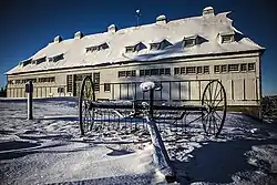 Six years later, a large group of loyalists arrived and Captain Samuel Osborn was granted title to ownership of the island.[6] When Hanson and Young refused to leave, Osborn began using the island for target practice for the 38 guns of the warship Arethusa. After being forced off their land, Hanson and Young petitioned Governor General Carleton in Halifax for the title to the island; however, Carleton ruled in favor of Captain Samuel Osborn. Traces of early loyalist buildings were excavated in the 1970s.[7]