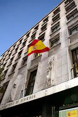 The Ministry of Housing and Urban Agenda[2] (Spanish: Ministerio de la Vivienda y Agenda Urbana) is a department of the Government of Spain responsible for proposing and carrying out the government policy on right to housing, buildings, urban planning, land use and architecture.