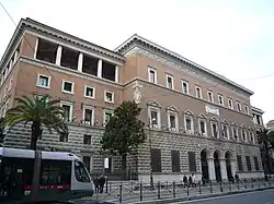 The Ministry of Justice is led by two fundamental functions that are enumerated in the Italian Constitution: the organization of the services related to the judiciary and the responsibility to take disciplinary actions against a judge.[3] All other functions are detailed through ordinary state laws. Article 110 of the Italian Constitution explicitly states that the organization and operation of services concerned with the administration of law are entrusted to the Minister of Justice.[4] The minister is entrusted by the parliament as well as the council of ministers, to carry out the administration of correct governance as a means of checks and balances in the country.[5] He also has the power of legislative initiative and the competence to create or remove judiciary.[6]