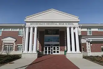 Minnechaug Regional High School (MRHS) is a public high school located in Wilbraham, Massachusetts, United States, and has a student population of approximately 1,200. It is the only high school in the Hampden-Wilbraham Regional School District. It serves the towns of Hampden, and Wilbraham.[4] The current principal is Stephen Hale. The school's official colors are green and white. Its school mascot is the Falcons. The district opened the current building in 2013.