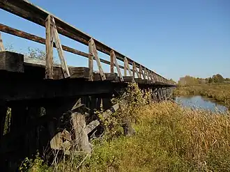 The Minnesota and International Railway Trestle at Blackduck in Beltrami County, Minnesota was the longest timber trestle in the state.[2] It was built in 1901 and 1902 by the Minnesota and International Railway, a subsidiary of the Northern Pacific Railroad, on a line between Koochiching (now International Falls) and Bemidji, Minnesota, where it met a branch line of the parent railroad running north from Brainerd. The bridge carried the railroad over Coburn Creek and a difficult marsh in Blackduck and was noted for its considerable length and intact substructure when it was added to the National Register of Historic Places 2014.[3]