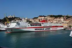 Minoan Lines is one of the largest passenger ferry companies in Europe, and one of the dominant passenger ferry companies in Greece, sailing between Piraeus and Crete and, in the Adriatic Sea, between Patras and various Italian ports. The company was founded in May 1972.[1] Since 2008 Grimaldi's Compagnia di Navigazione SpA owns and controls 95.9 of the stock of Minoan Lines.
