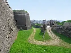 On 22 June, a portion of the Austrian III Corps, under the Crown Prince of Württemberg. took possession of the entrenchments of Germersheim, on the left bank of the Rhine. Lieutenant Field Marshal Count Wallmoden was posted, with ten battalions and four squadrons, to observe and blockade of the Fortress of Landau, and the Queich Line. The main body of the corps stood between Bruchsal and Philippsburg. On 23 June the corps crossed the Rhine at Germersheim, and passed the Line of the Queich without opposition.[26][27]