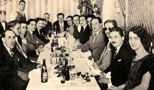 Grupo Minorista, at lunch in 1924, entertaining the opera singer Titta Ruffo (seated center right)