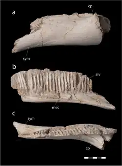 - ^ a b c d Longrich, Nicholas R.; Isasmendi, Erik; Perada-Suberbiola, Xabier; Jalil, Nour-Eddine (2023). "New fossils of Abelisauridae (Dinosauria: Theropoda) from the upper Maastrichtian of Morocco, North Africa". Cretaceous Research. 152: 105677. Bibcode:2023CrRes.15205677L. doi:10.1016/j.cretres.2023.105677. S2CID 261090591.