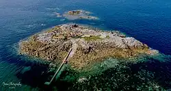The Minquiers (French pronunciation: [mɛ̃kje]; Les Minquiers with definite article; Jèrriais: Les Mîntchièrs ⓘ; known as "the Minkies" in local English) are a group of islands and rocks, about 15 km (9.3 mi) south of Jersey. They form part of the Bailiwick of Jersey.[2] They are administratively part of the Parish of Grouville, and of its Vingtaine La Rocque.[3]